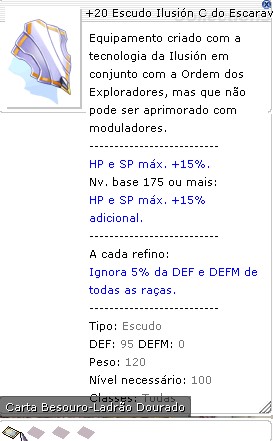 Tipo:Escudo DEF:95DEFM:0 Peso:120 Nível necessário:100 Classes:Todas