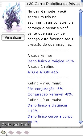 A cada refino: Dano físico e mágico +5%. A cada 2 refino: ATQ e ATQM +15. --------------------------