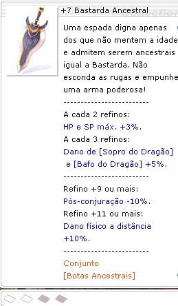 A cada 2 refinos: HP e SP máx. +3%. A cada 3 refinos: Dano de [Sopro do Dragão] e [Bafo do Dragão] +5%. --------------------------