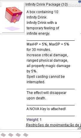 HP Máx +5%, SP Máx +5% por 30 minutos.