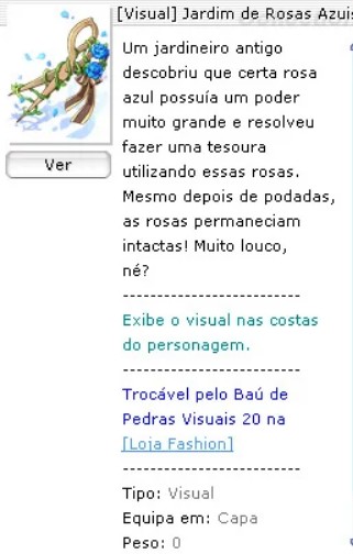 Tipo:Visual Equipa em:Capa Peso:0 Nível Necessário:1 Classes:Todas