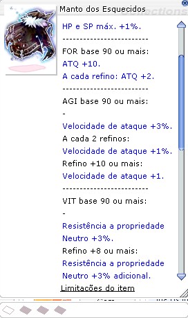 Tipo:Capa DEF:20DEFM:0 Peso:60 Nível necessário:120 Classes:Todas