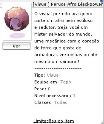 Tipo:Visual Equipa em:Topo Peso:0 Nível necessário:1 Classes:Todas